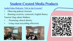 Lecțiile au fost o adevărată provocare pentru elevii din clasa a X-a, care au fost încurajați să-și dezvolte creativitatea și să creeze diverse conținuturi și produse media în limba engleză. Sub ghidarea profesoarei, ei s-au descurcat foarte bine, deși, inițial, sarcina nu a fost dintre cele mai ușoare. „De la început erau curioși, interesați, ascultau cu atenție, apoi, când au fost puși în situația să aplice cunoștințele și să creeze propriul lor conținut, au devenit un pic stresați și copleșiți. Am depus efort și le-am oferit tot sprijinul ca să depășim obstacolele, încurajându-i să continuăm cu pași mici, dar siguri. Ulterior, m-a bucurat faptul că au început să se cunoască mai bine între ei și să se ajute reciproc, să facă proiecte în grup, iar, la ultimele teme, a fost o plăcere să-i observ implicați, responsabili, prezentând produsele la timp și de o calitate tot mai bună. Am observat, cu admirație, evoluția fiecăruia și sunt mândră de ei. De fapt, și ei au ajuns a fi mulțumiți, recunoscând că a fost provocator, dar interesant și foarte util, întrucât au aflat multe lucruri noi – cum să distingă între fapte și opinii, cum să consume și să analizeze informația”, recunoaște Irina Mutruc.